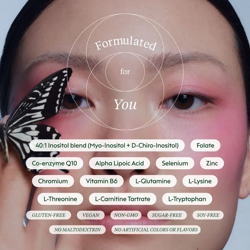 - 40:1 Myo-Inositol + D-Chiro-Inositol — Clinically proven ratio for hormone regulation